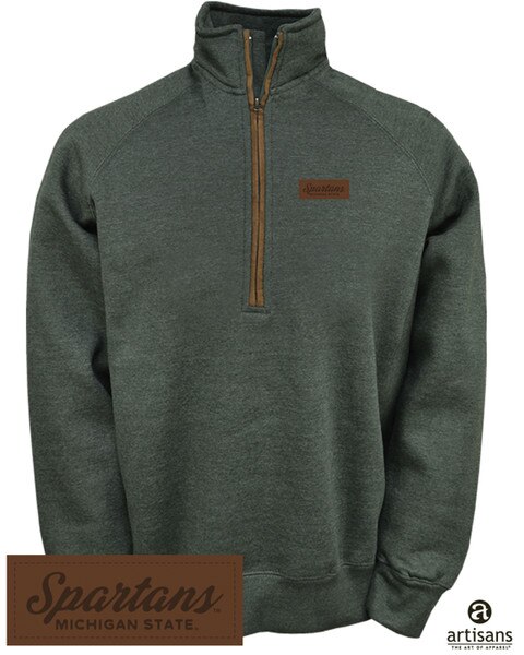 Pinit Artisans Michigan State Men's Green 1/2 Zip with Suede Zipper and leather patch(0)No Reviews yet SKU: 09941388277 ARTISANS 1/2 ZIP GRN W/SUEDE ZIPPER LC SPARTANS/M.S. LEATHER PATCH- Status: Available $69.95 Out of Stock Size - S M Quantity -+ Add to Shopping Cart Print Details 5% cotton 45% poly with stitched on leather patch Details Back Details5% cotton 45% poly with stitched on leather patch Reviews 0 Back Ratings & ReviewsNo reviews availableBe the first to Write a Review