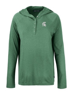 Cutter & Buck Michigan State Women's Green Hooded 1/4 Snap with Helmet Emblem