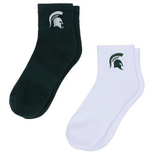 Zoo Zats Michigan State Helmet Quarter Socks 2-Pack, 1 pair green 1 pair white